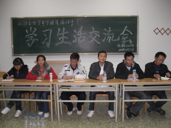 2011年10月13日晚七点半,化学化工学院新老生座谈会在2011级新生各班顺利举行,参加此次座谈会的有学院08、09级优秀学生代表、学生会干部及2011级全体学生。