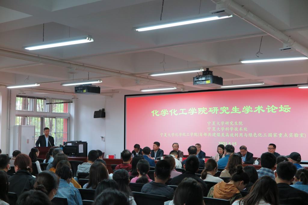 【宁夏大学新闻中心讯 化学化工学院】为活跃学术氛围,提升科研能力,5月15日,化学化工学院在知化楼115室举办了以“新时代、新视野、新方向”为主题的研究生学术论坛。中国科学院化学研究所研究员刘志敏、中山大学教授童明良、研究生院院长朱学军、科学技术处处长曹兵、省部共建煤炭高效利用与绿色化工国家重点实验室主任郭庆杰、学院党委书记高继明、院长倪刚出席论坛开幕式,学院副院长刘翔宇主持论坛。