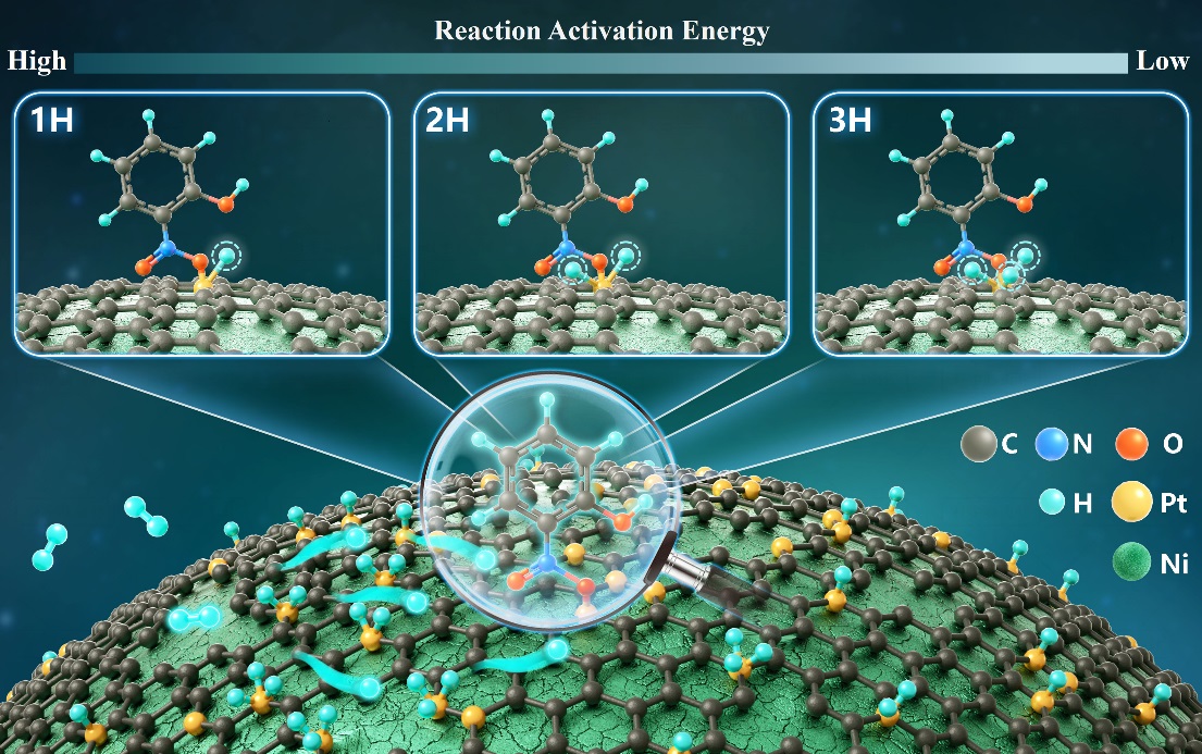 经过三年的基础研究和催化剂产品开发,上述基础研究成果近日以“Spillover Hydrogen Boosts Nitroarene Hydrogenation to Industrial Activity with Ppm-Level Platinum Single Atoms”为题发表在国际著名期刊AngewandteChemieInternational Edition,https://doi.org/10.1002/anie.202514332。相关研究内容获得了2025年国家自然科学基金地区项目资助(No.22568037)。Pt1/Ni@C加氢催化剂已完成公斤级合成,并与宁夏华御化工有限公司联合验证了催化剂的寿命和产品性能指标。上述成果见证了宁夏大学“化学工程与技术”一流学科通过企业需求调研、科学问题凝练、基础研究与产品开发等过程开展有组织科研,服务地方企业研究思路的转变。