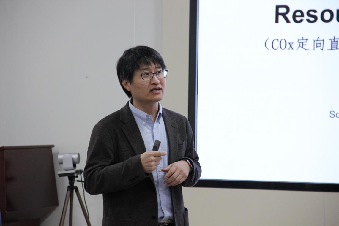 杨国辉教授以“COx定向直接转化:桥接非石油基碳资源与高值化学品的未来途径”为主题,聚焦COx的定向催化转化技术,系统介绍了如何通过创新催化过程,将COx高效转化为醚、酯、醇和芳烃等高附加值化学品。他还进一步探讨了醇、醚等平台分子的增值转化路径,揭示了催化创新在提升煤化工产业链价值与效率方面的广阔前景。整场报告内容详实、逻辑清晰,激发了在场师生对催化领域前沿问题的浓厚兴趣。