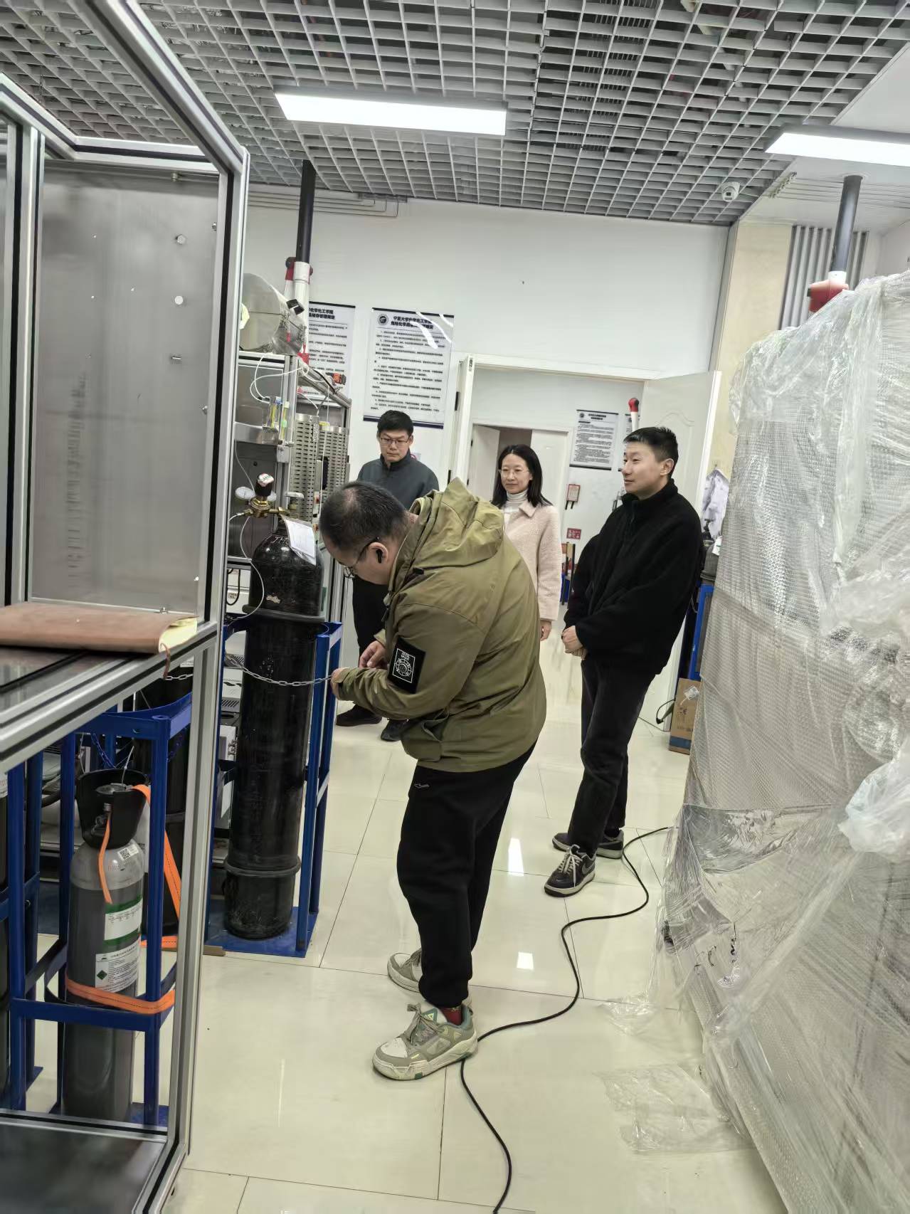 安全检查工作小组主要针对科技楼各个实验室危化品及化学试剂的管理,气瓶与压力容器使用、危废暂存及消防安全等方面进行全面细致排查,对排查出的安全隐患要求相关实验室立行立改,确保形成闭环管理。